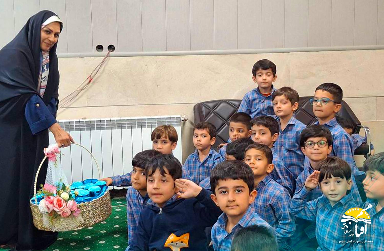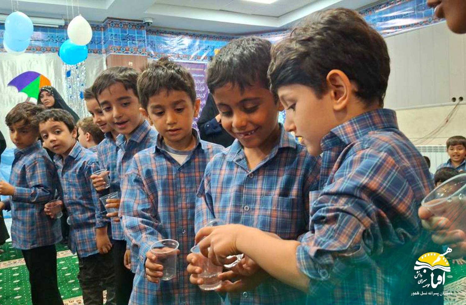 دانشآموزان پایه اول دبستان پسرانه نسل ظهور، در قالب «جشن آب» با شور و شوق کودکانه، کلمهی آب را نوشتند و زیبایی یادگیری حروف آ و ب را جشن گرفتند.